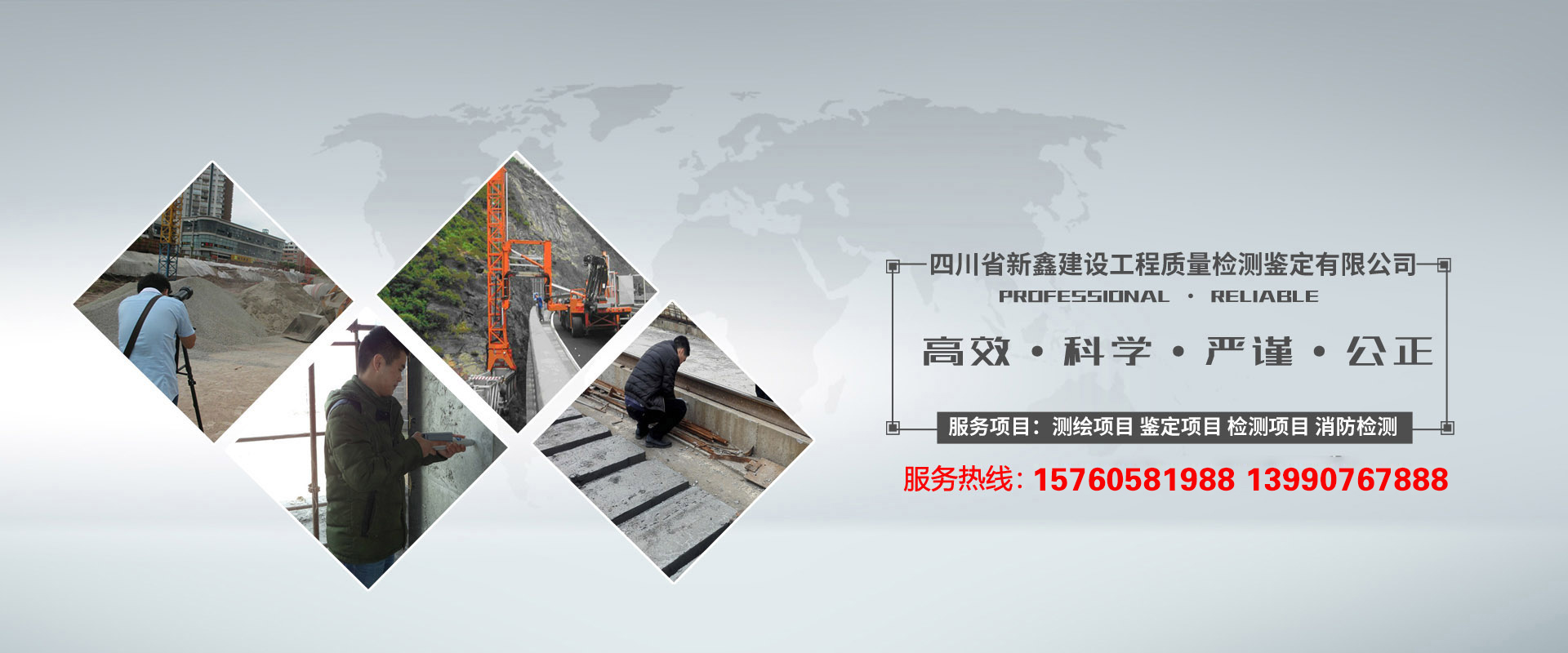 四川省新鑫建設工程質(zhì)量檢測鑒定有限公司,屬省屬企業(yè),公司位于成都市人民中路三段,進賬實收注冊資金為1000萬元人民幣。該公司是經(jīng)四川省工商行政管理局批準成立、頒發(fā)營業(yè)執(zhí)照并具有建設工程質(zhì)量檢測、建設工程質(zhì)量鑒定、工程測量、房產(chǎn)測繪、地籍測繪、白蟻防治、消防設施質(zhì)量檢測維護保養(yǎng)及建設工程相關(guān)檢測鑒定資質(zhì),是一支高智能技術(shù)性專業(yè)機構(gòu)。公司技術(shù)雄厚,人員專業(yè),設備先進,儀器齊全,檢測鑒定準確,測量測繪精細。白蟻防治、建設工程質(zhì)量、消防工程質(zhì)量檢測技術(shù)過硬,擁有多位業(yè)界資深專家及一支工程測量、房產(chǎn)測繪、地籍測繪、工程檢測鑒定的專業(yè)技術(shù)隊伍。我公司專業(yè)技術(shù)人員經(jīng)驗豐富,長期從事建設工程檢測、鑒定、測繪、測量、消防設施質(zhì)量檢測維護保養(yǎng)和白蟻防治工作。公司現(xiàn)有從業(yè)人員50余人,具有本科及以上學歷的20人,高級工程師8人,工程師12人,其中各類專業(yè)持證上崗人員32人